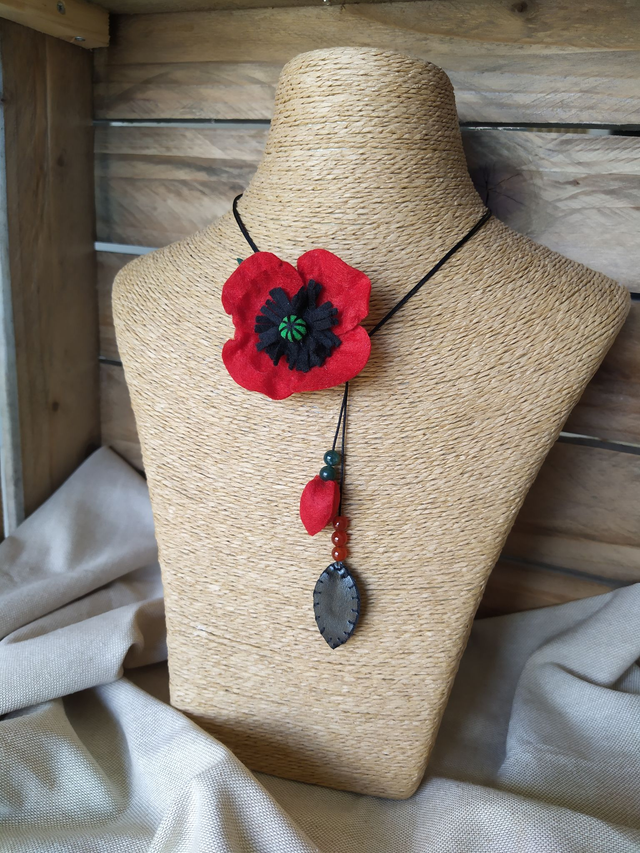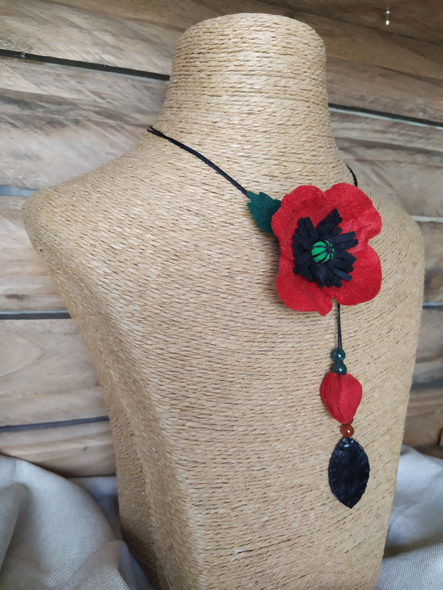 Collier lacet en feutrine Coquelicot rouge