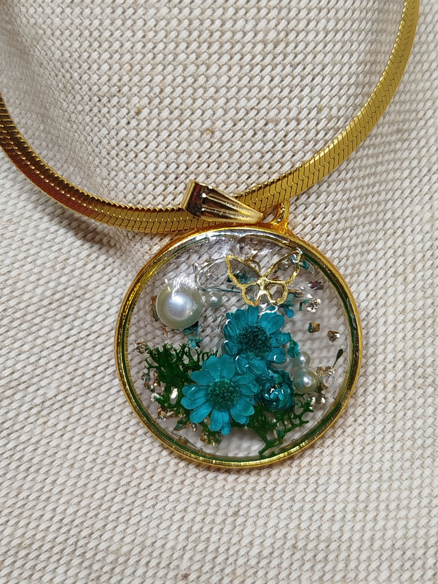 Découvrez la collection de colliers en résine UV, où de véritables fleurs séchées, des feuilles délicates, et des touches de paillettes sont encapsulées pour l'éternité.