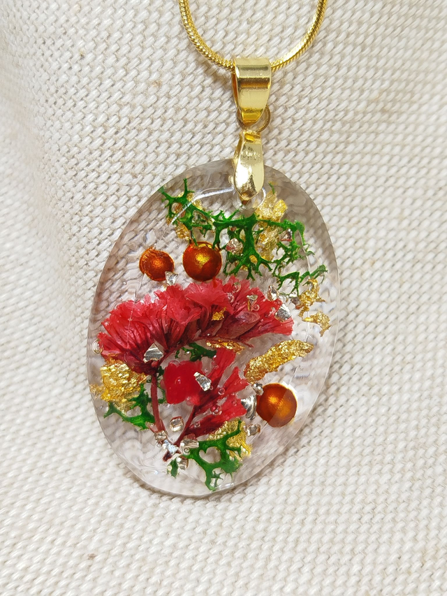 Chaque pendentif est méticuleusement coulé à la main dans de la résine cristalline, préservant la beauté et la couleur des éléments pour toujours.