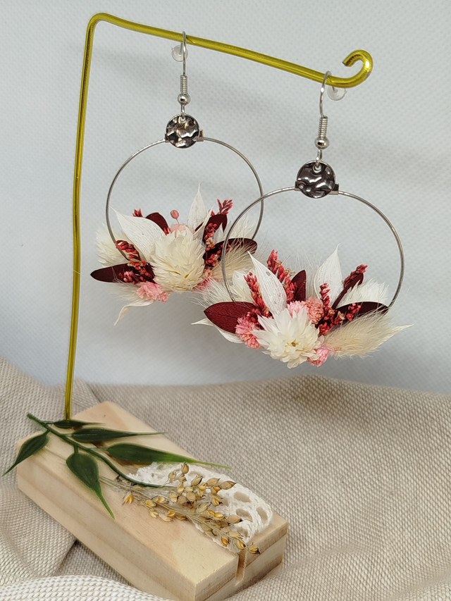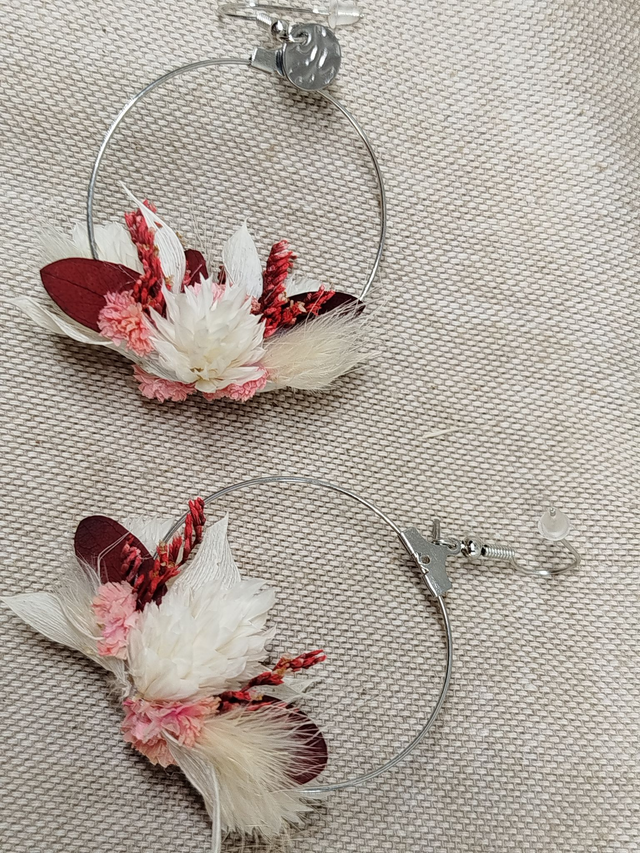 Créoles Lana en fleurs naturelles coloris blanc et rose