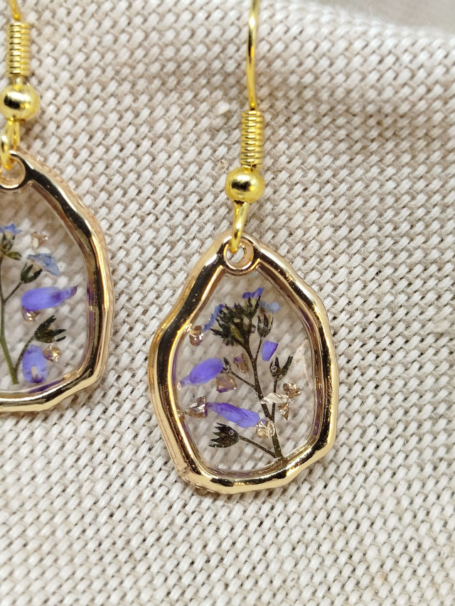 Boucles d'oreilles avec inclusion de fleurs naturelles sous résine